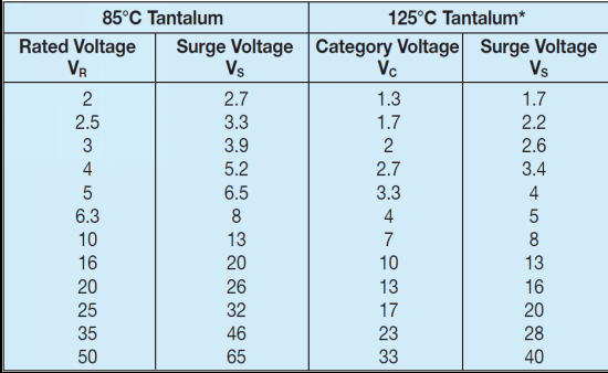钽电容的浪涌电压